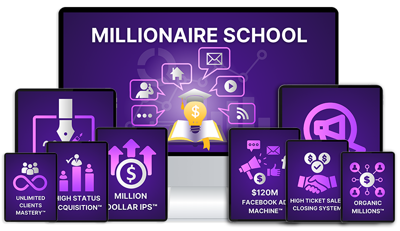 Millionaire School contains information that teaches you the most healthy & peaceful way to build a 1M+ client business…